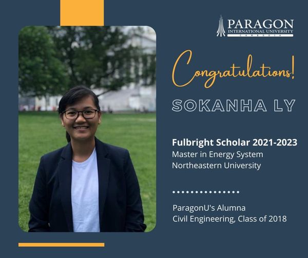 The Department of Civil Engineering at Paragon International University proudly congratulations to Ms. Sokanha LY on being awarded a Fullbright Scholar 2021. Sokanha is a graduate of theย Classย of 2018 in the Department of Civil Engineering.